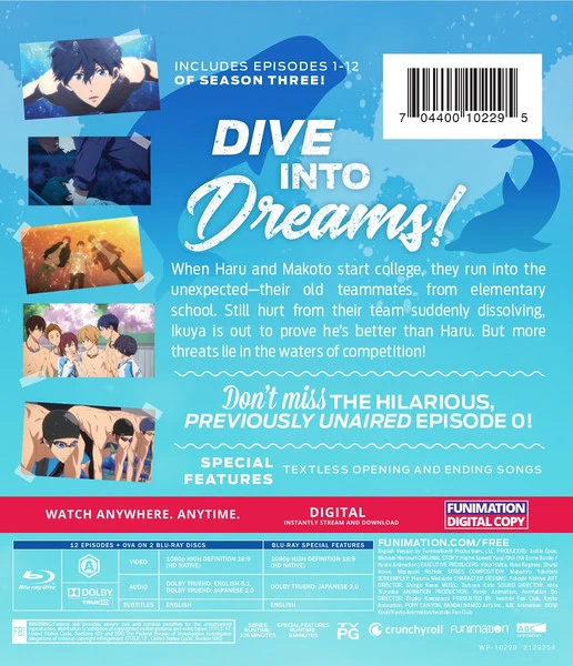 When Haru and Makoto start college, they run into the unexpected—their old teammates from elementary school. Still hurt from their team suddenly dissolving, Ikuya is out to prove he’s better than Haru. But more threats lie in the waters of competition!